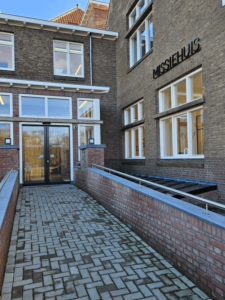 Met de fiets komt u aan via de sportvelden van de Blauwe Berg. Dan neemt u links de afslag naar de doodlopende weg uitgezonderd voor fietsers. Dan ziet u de school die zich in dit pand bevindt. U gaat voor de school langs rechtsaf. Vervolgens ziet u de parkeerplaatsen en de ingang van de Missiehuis Kliniek.